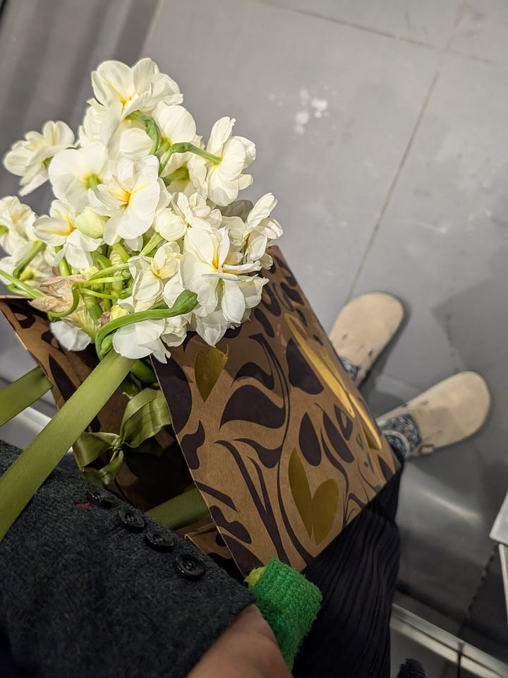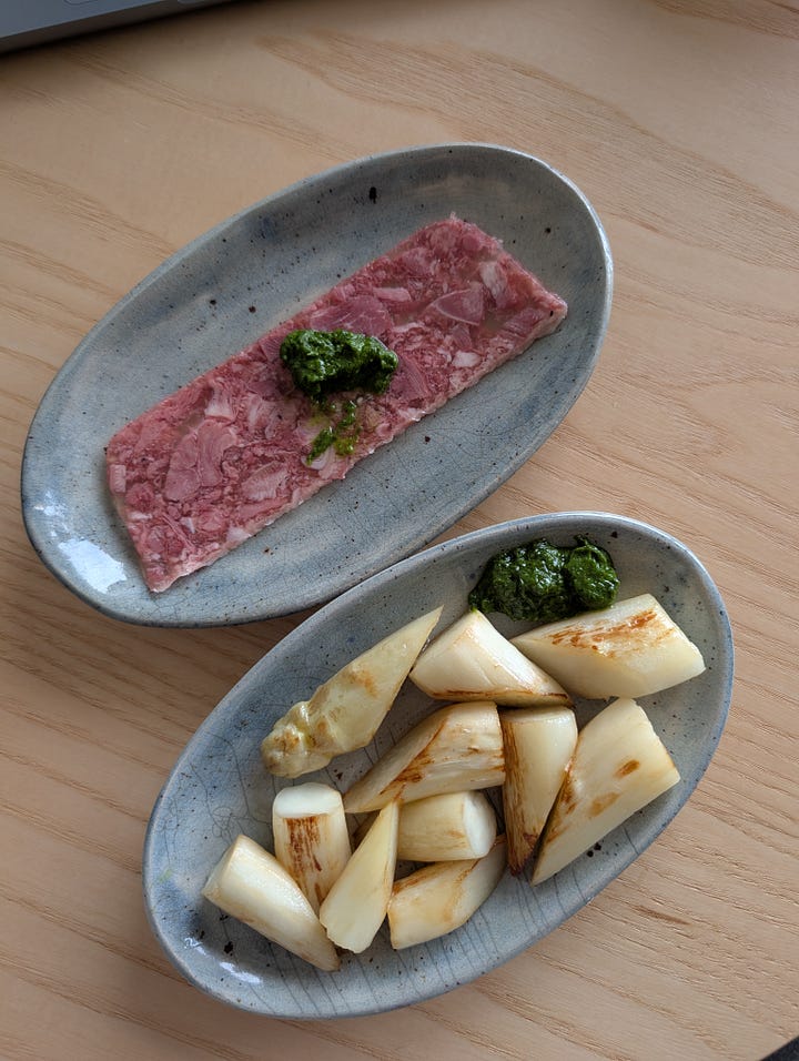 A trip across the pond to NYC for Easter long weekend. I returned home with a nasty nasty cold. Landed home to a care package from M with daffodils from her garden and my favourite headcheese and white asparagus from Brussels
