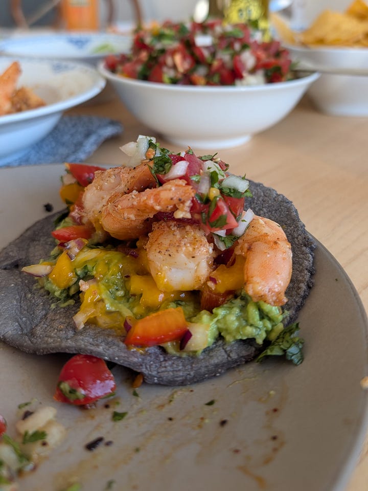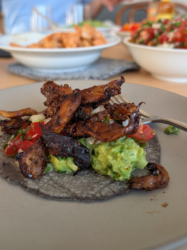Also finally used my new tortilla press to make blue corn tortillas! Delicious for mushroom and prawn tacos