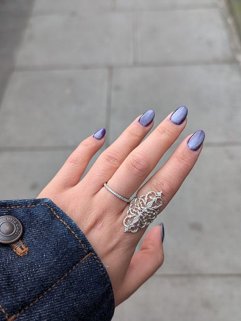 Some fashion moments. Getting my nails done is definitely a new habit I picked up in London, but I mean look at them witchy cateyes. This beautiful transparent trash bag (aka the Temple Cape from Rick Owens SS26). So glad we have warmer weather and I can switch to all my summer blacks.